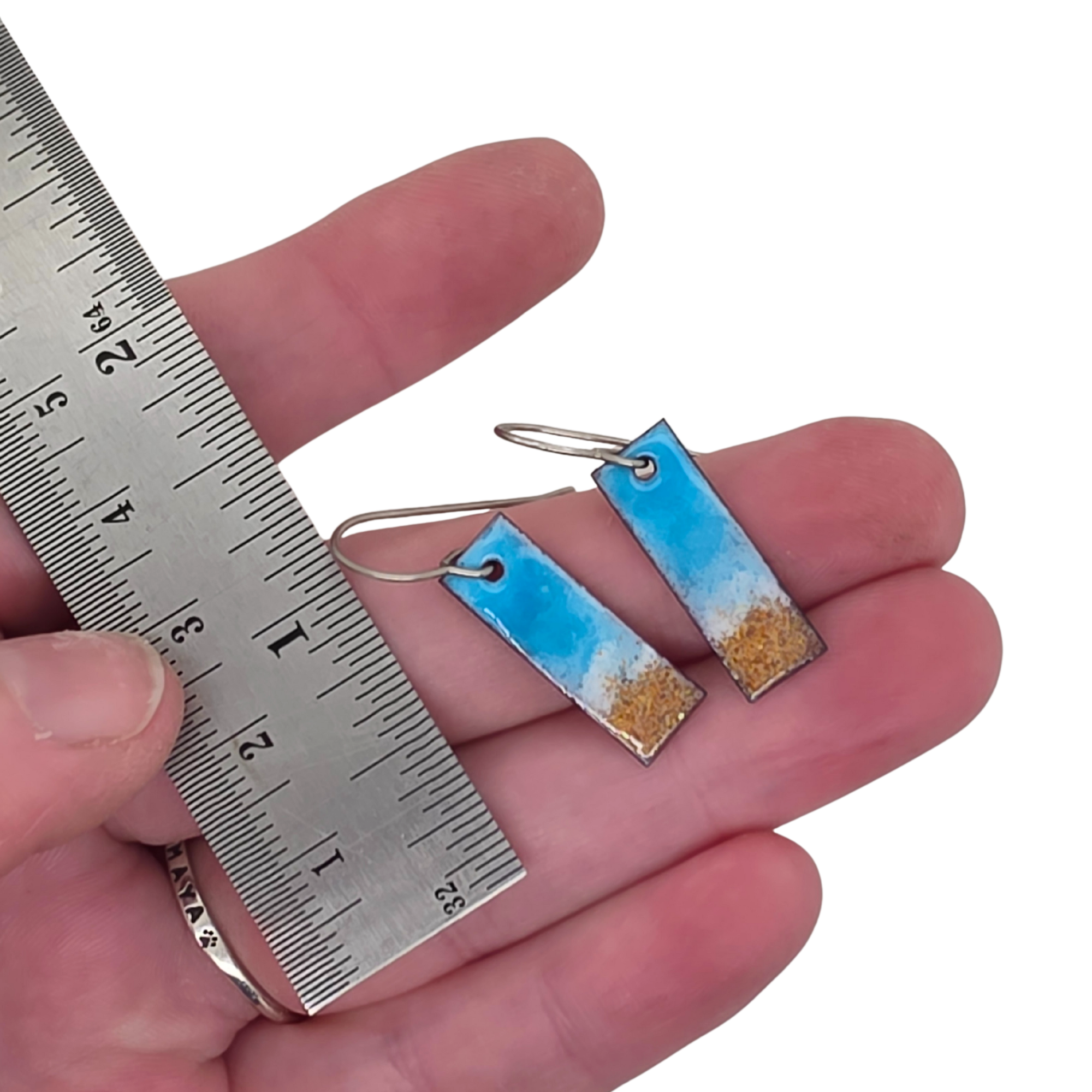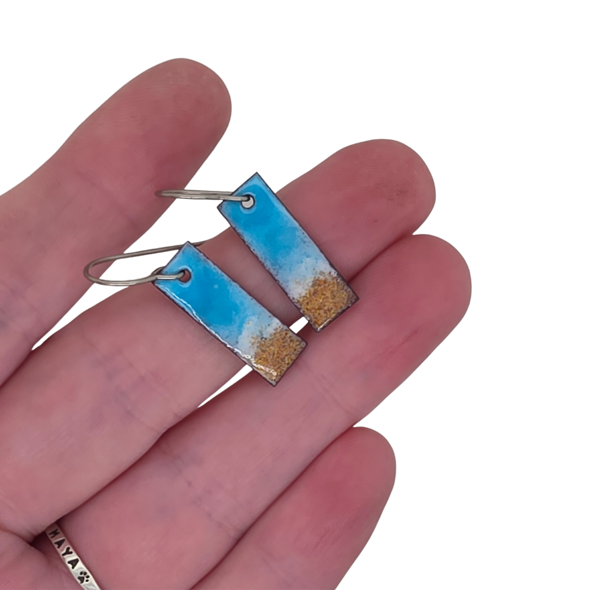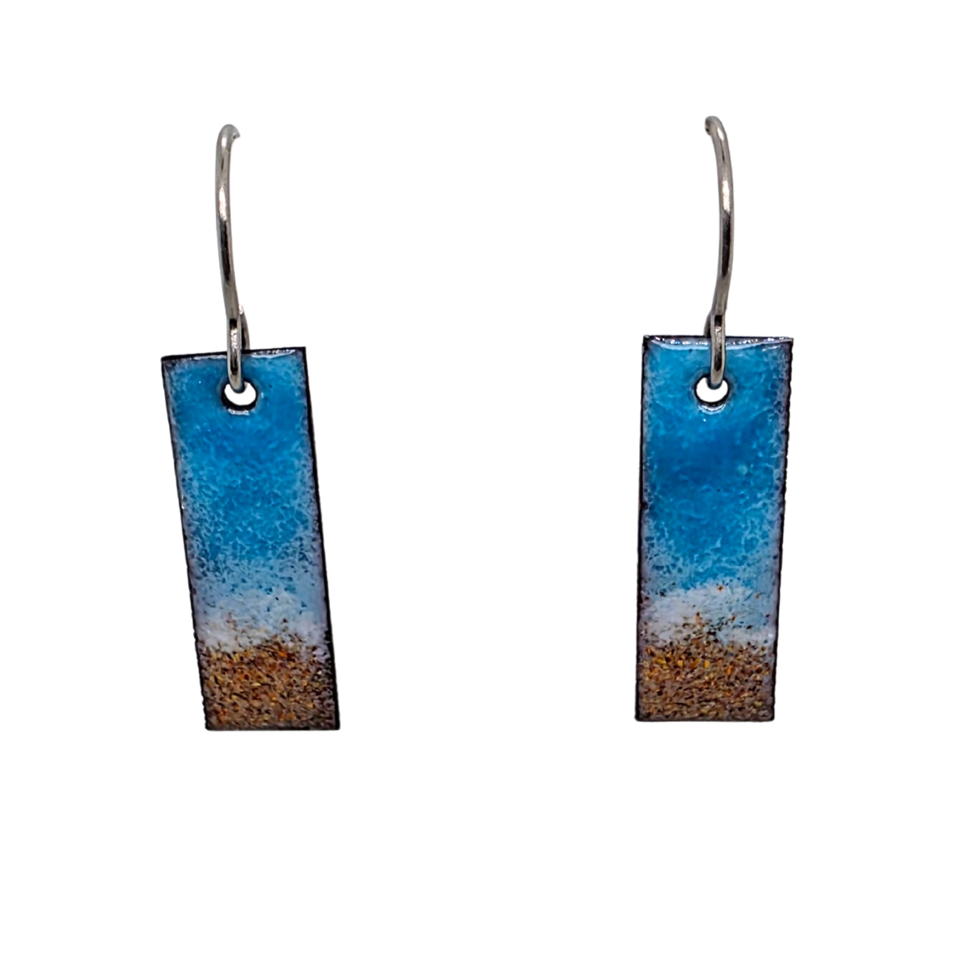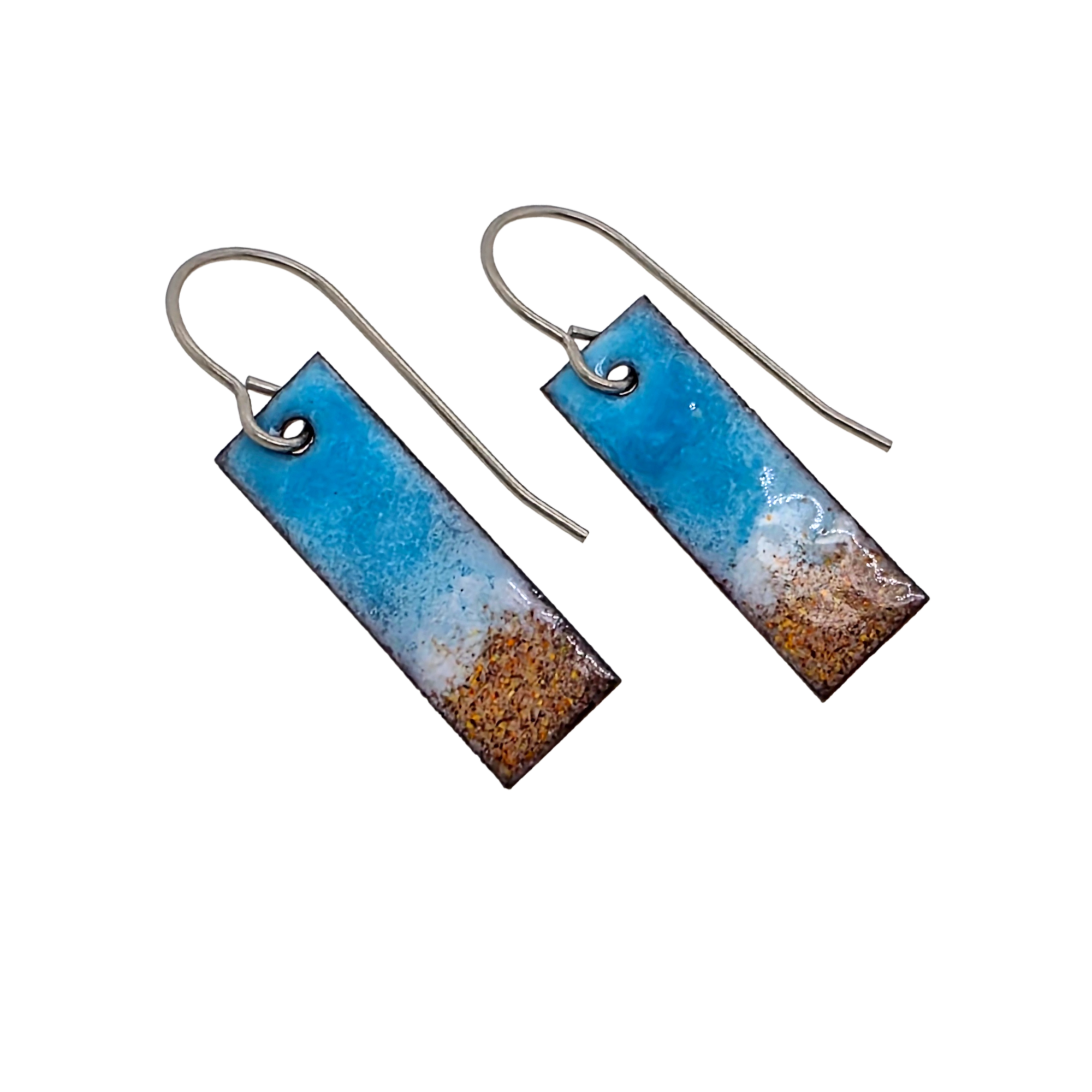 These Beach Earrings are inspired by the quiet beauty of the shoreline. Handmade from layers of glass enamel fused to copper, each pair captures the soft, shifting colors of the ocean's shoreline.