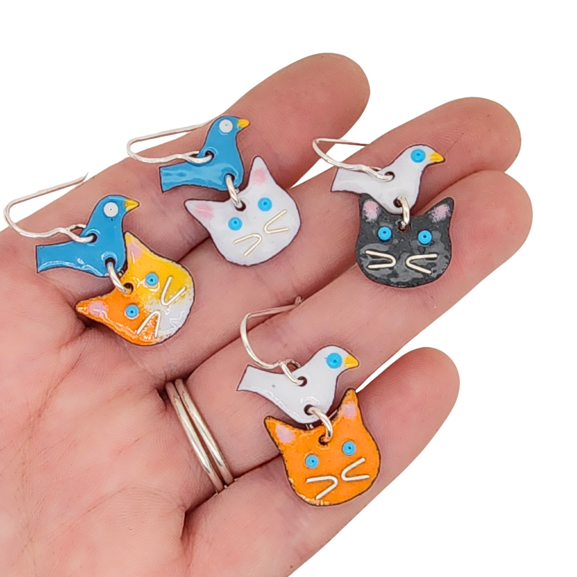 These Cat Bird Earrings are more than accessories; they're wearable expressions of joy and affection for our four-legged friends, as well as little pieces of art!