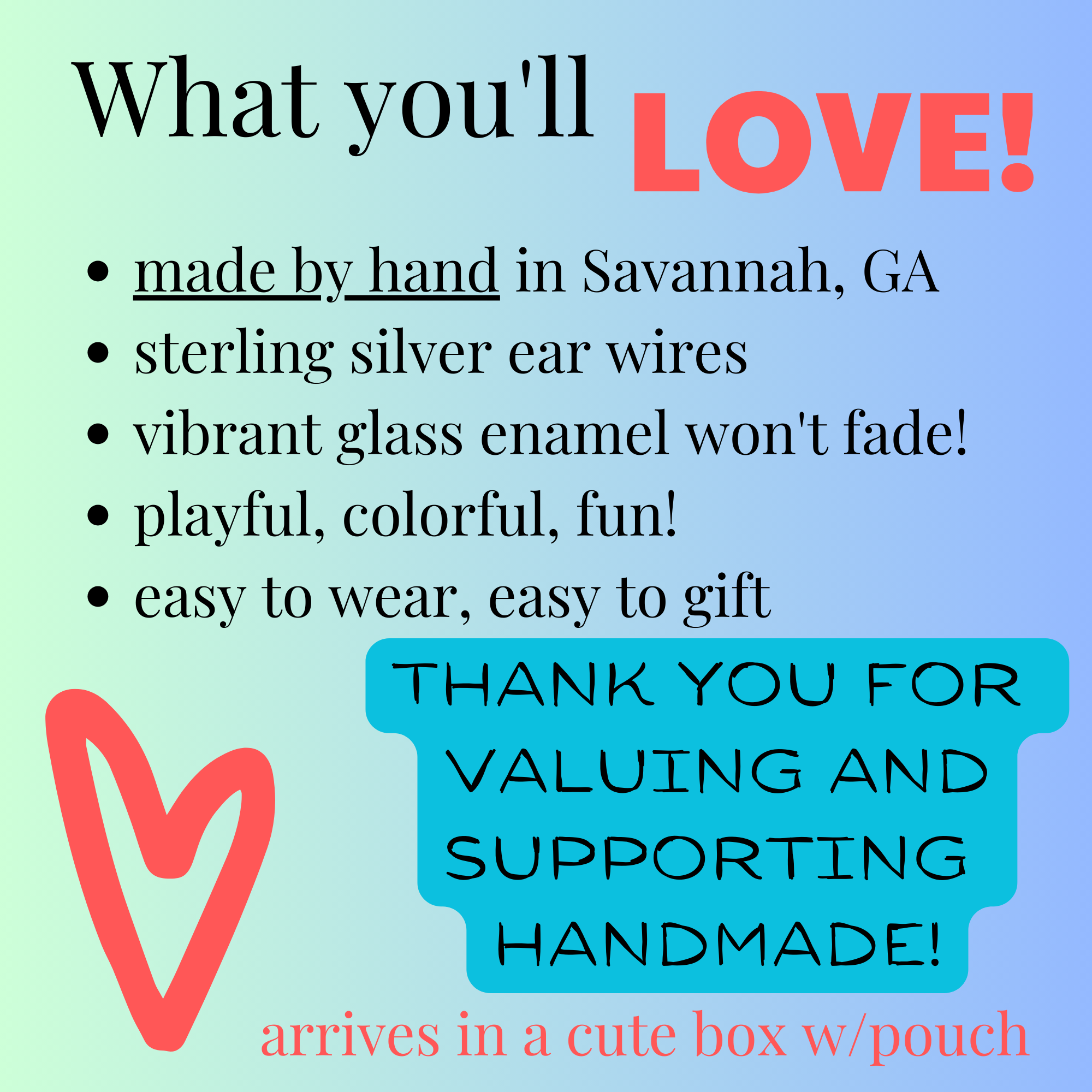 With silver prices on the rise, I’ve been mindful about finding ways to keep my jewelry comfortable to wear and accessible to enjoy. Many earrings now feature titanium ear wires by default. Titanium is a lightweight, very strong, hypoallergenic option that’s gentle on sensitive ears and well suited for everyday wear. Sterling silver ear wires are available as an upgrade if you prefer a brighter color and traditional precious metal.