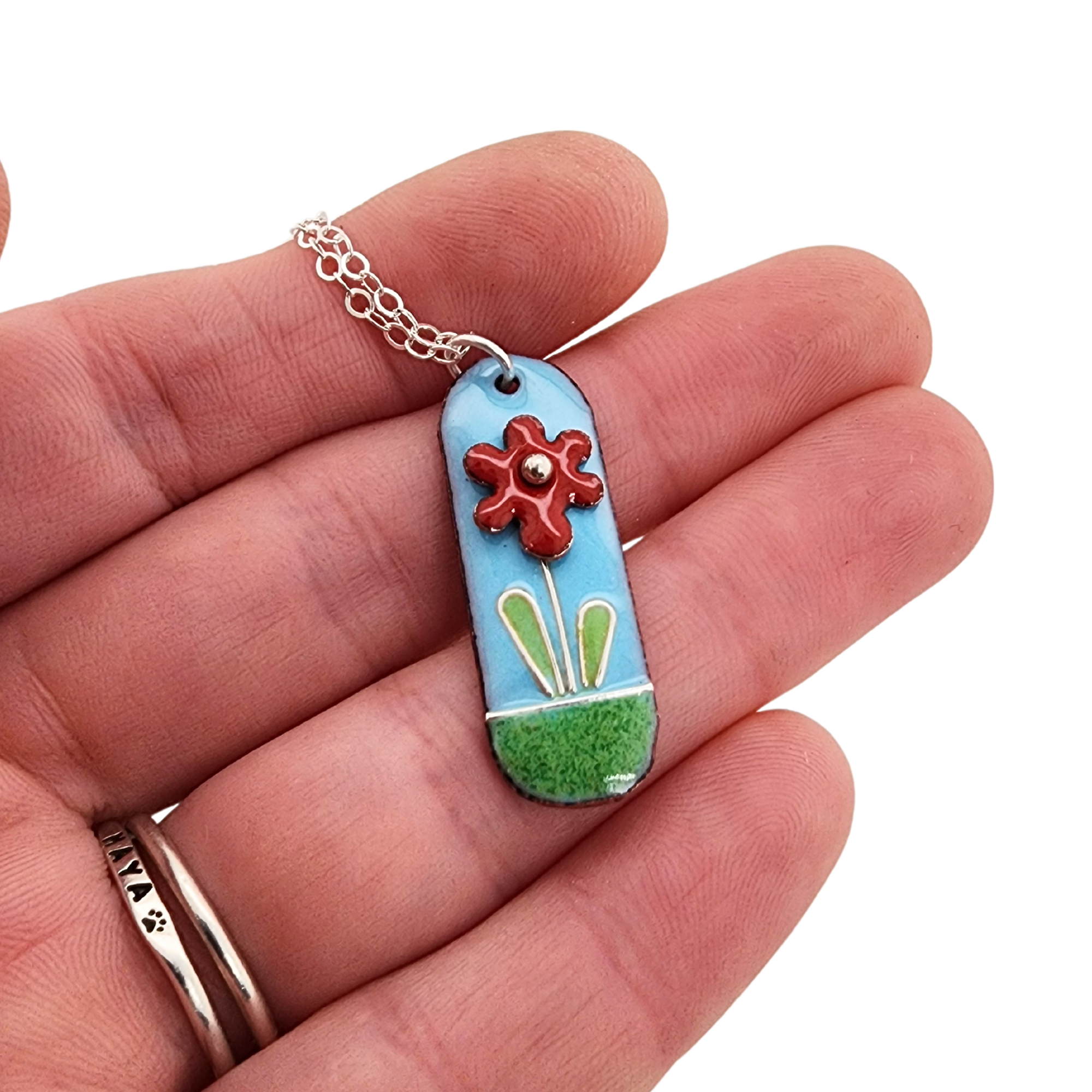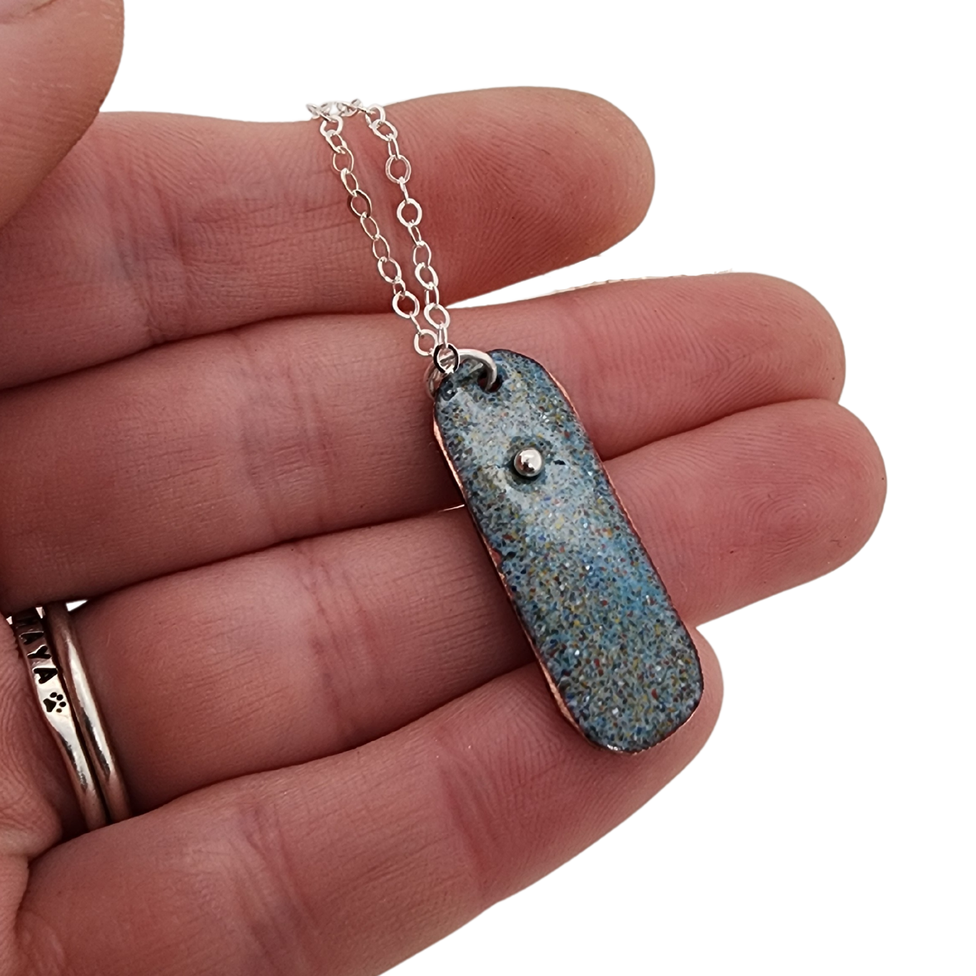 Many of my necklaces are now offered with stainless steel chains, which are strong, durable, tarnish-resistant, and low-maintenance. Sterling silver chains are still available as an upgrade if you prefer a traditional precious metal.