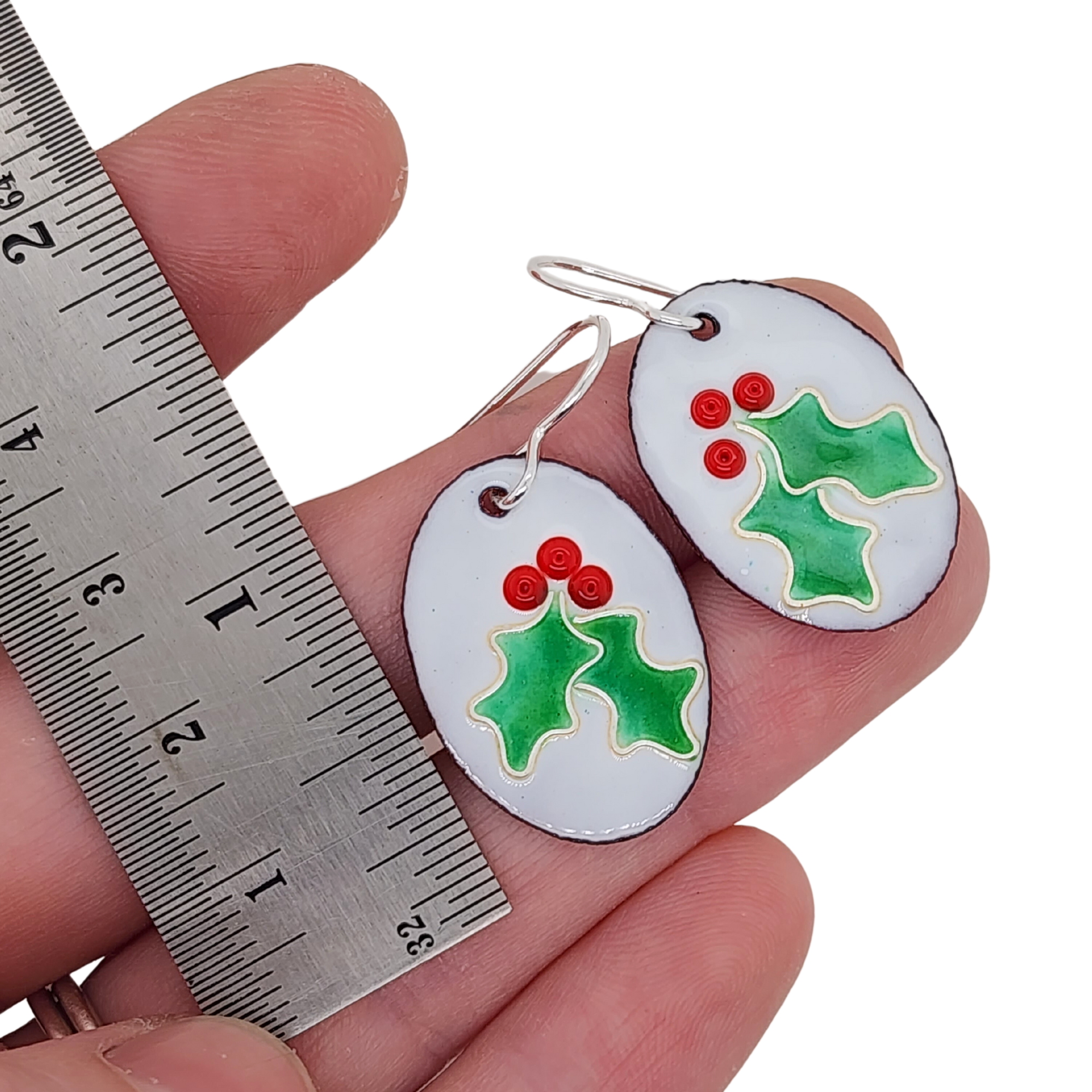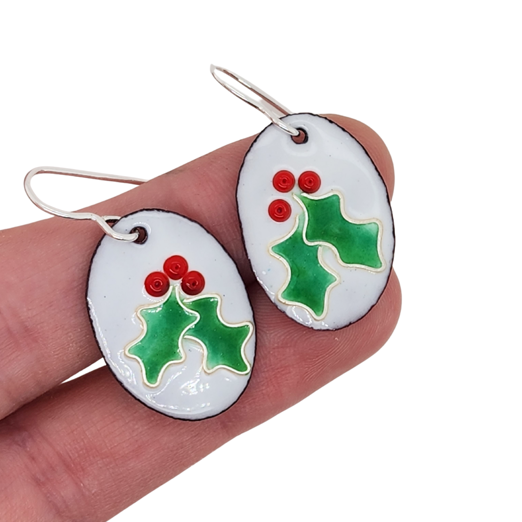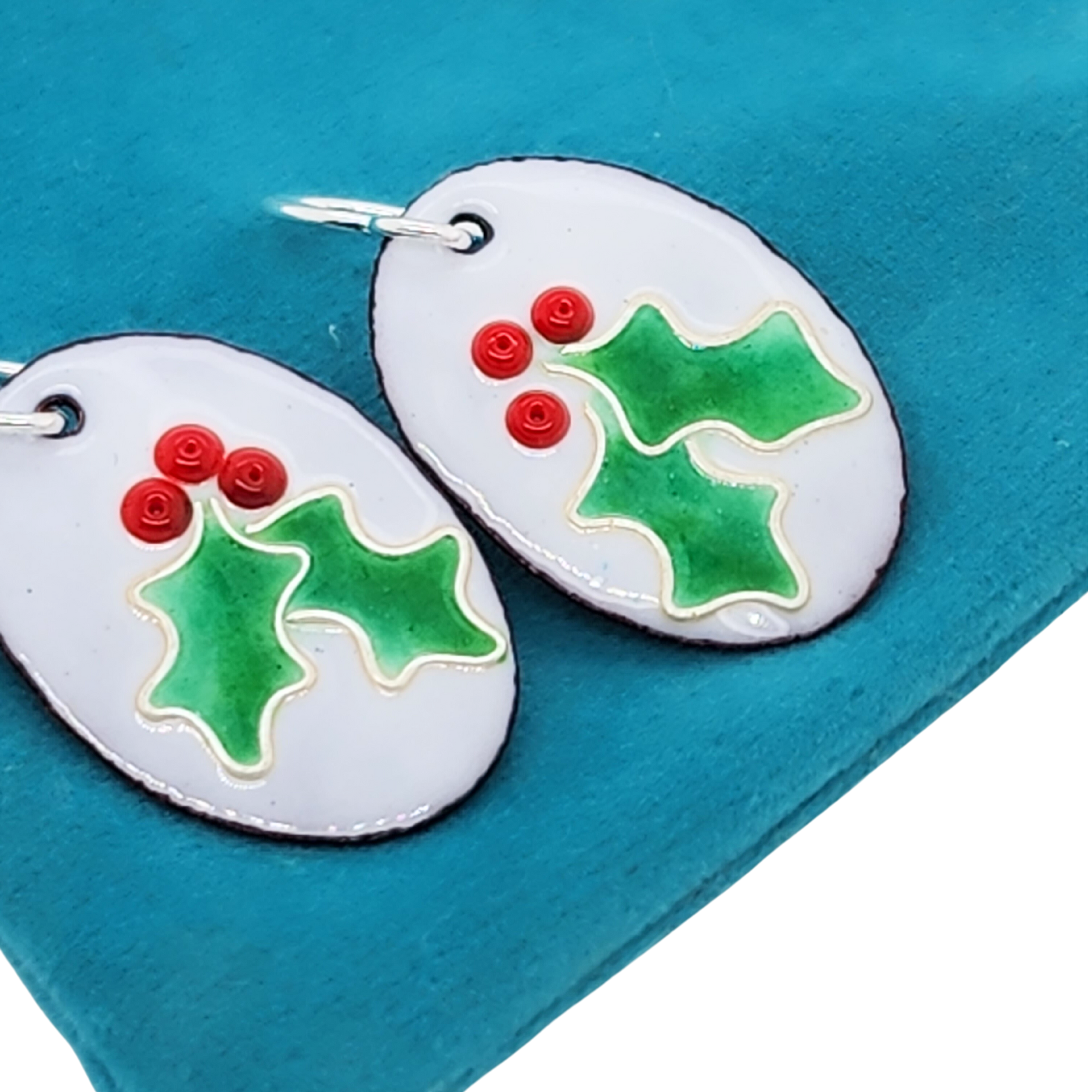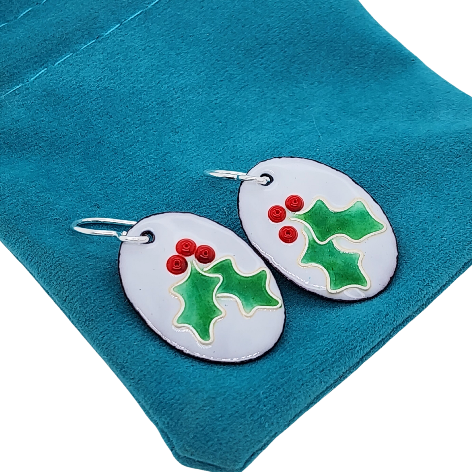 🍃 Handcrafted Beauty: Each holly leaf is meticulously hand formed and enameled in layers to capture the vibrant, glossy green of real holly leaves. Each pair of earrings is a true work of art.