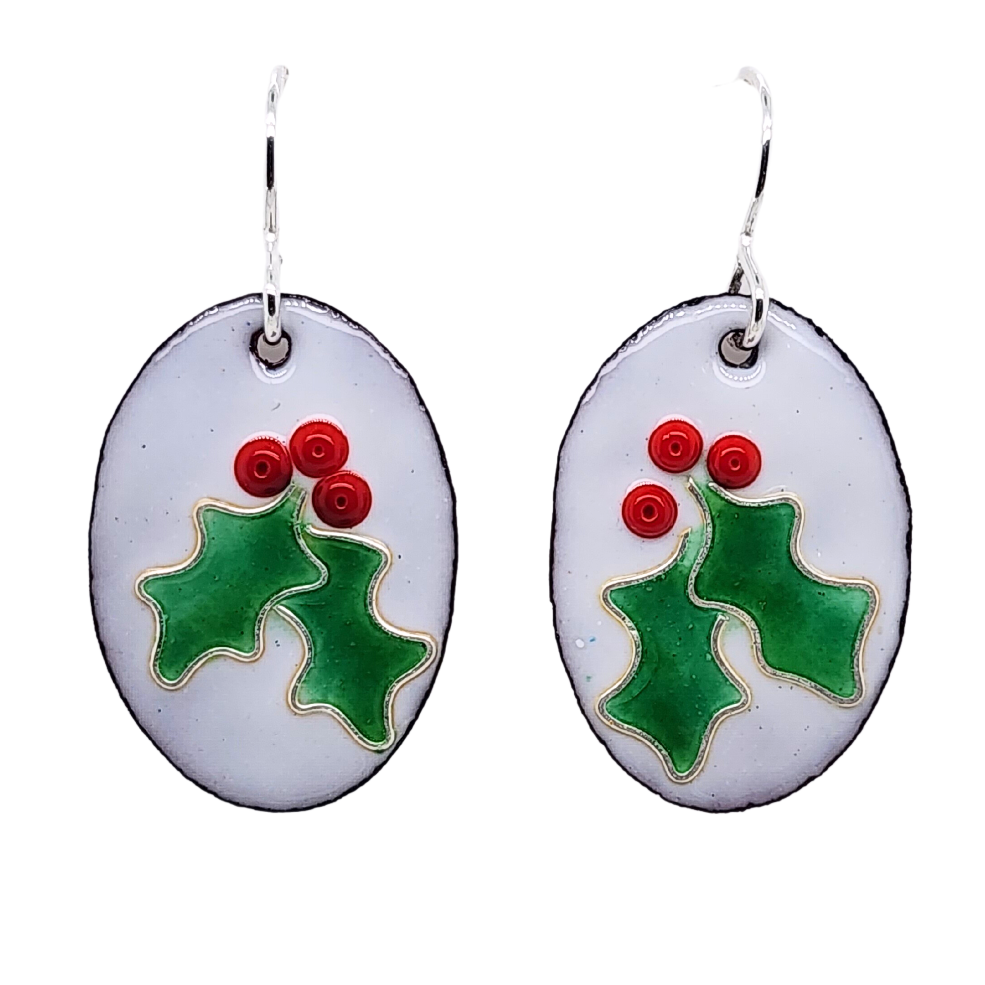 Elevate your holiday style with these wonderful Glass Enamel Holly Leaf Earrings! Crafted with love and attention to detail, these unique earrings are the perfect accessory to add a touch of festive charm to any outfit.