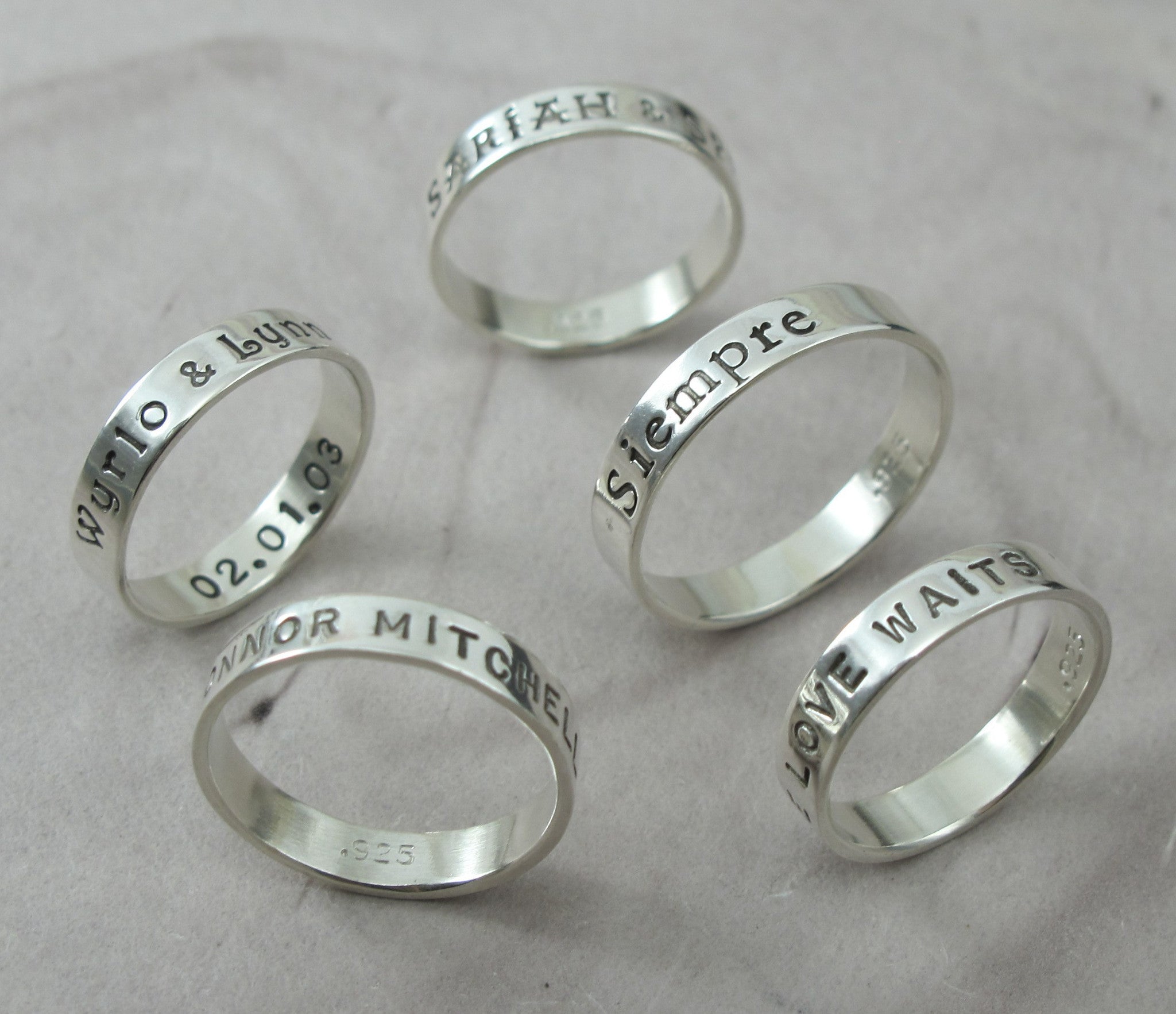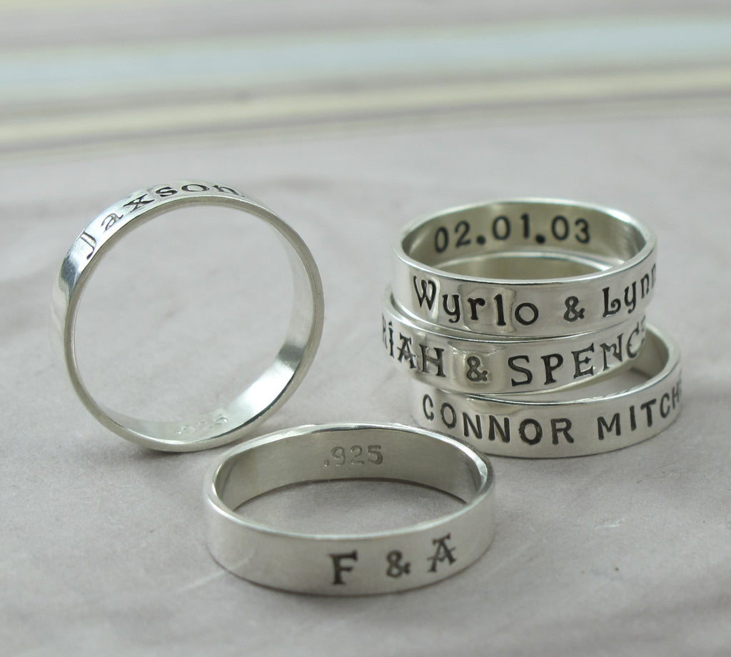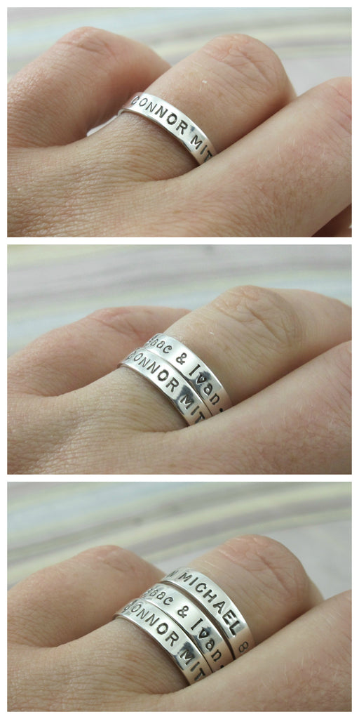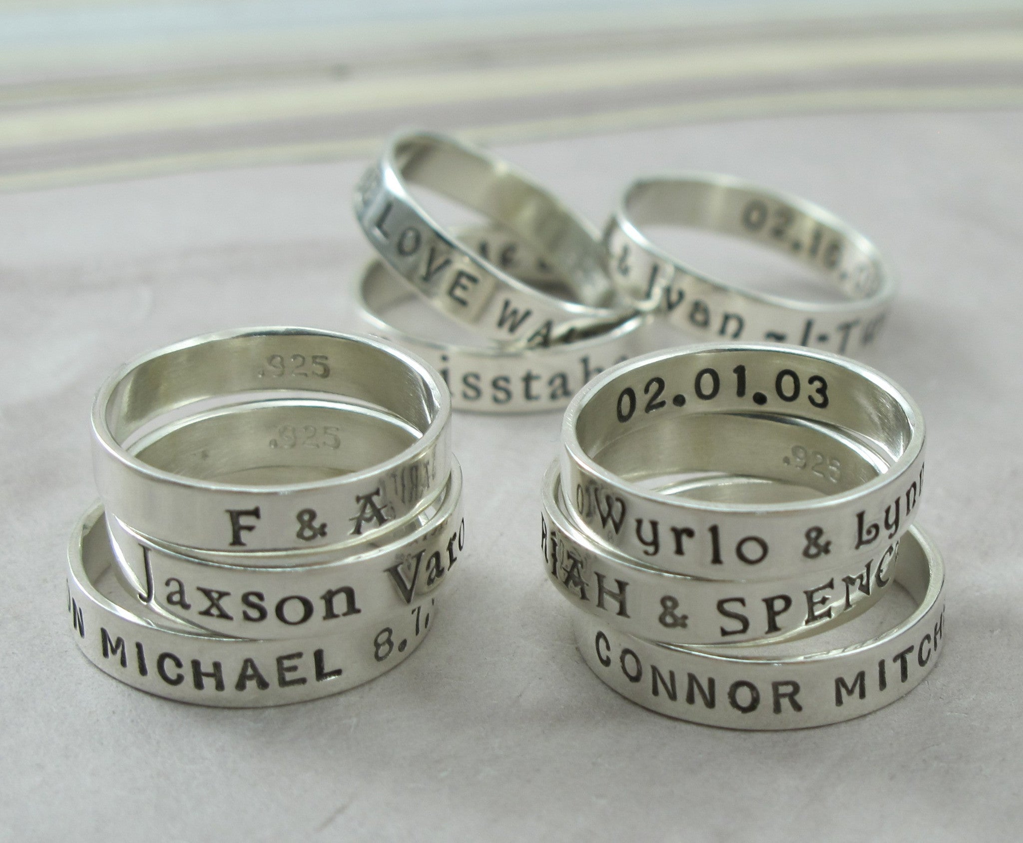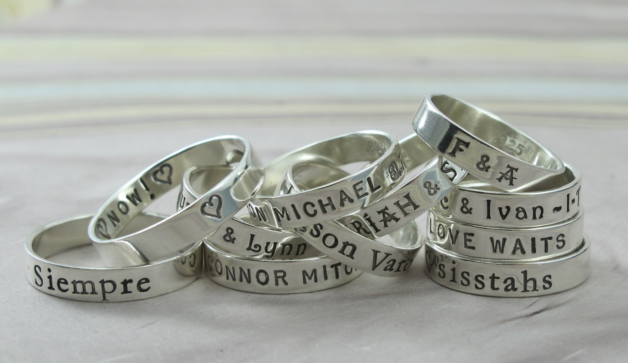 - These rings are stamped by hand, as such, letter placement will have a whimsical touch. This embodies the charm of a hand stamped piece and is not to be considered a flaw.